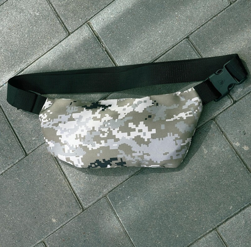 Камуфляжная поясная сумка с белым лого
