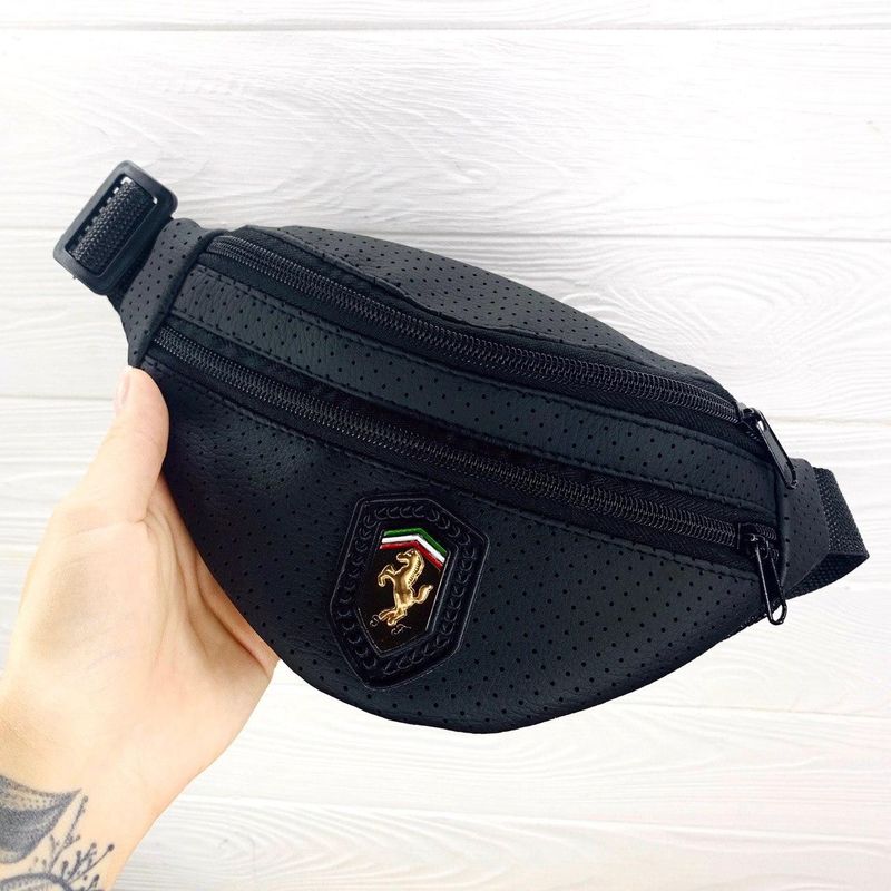 • Бананка мужская из кожзама с гербом "Феррари" черная
