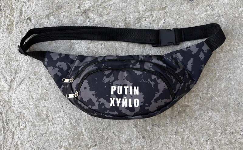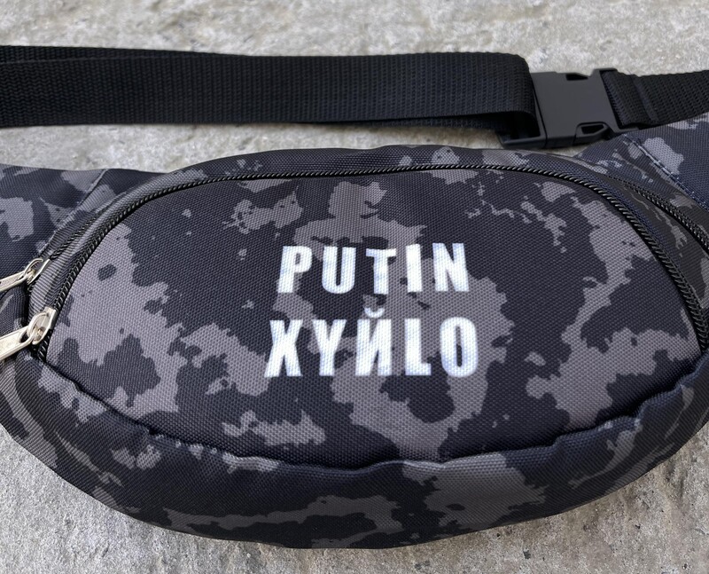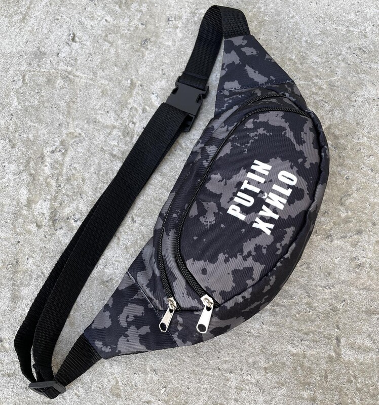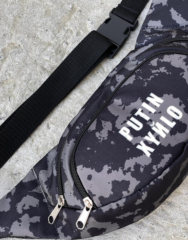 Камуфляжная поясная сумка с белым лого