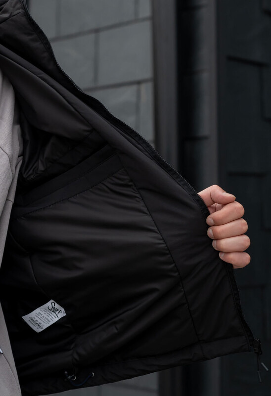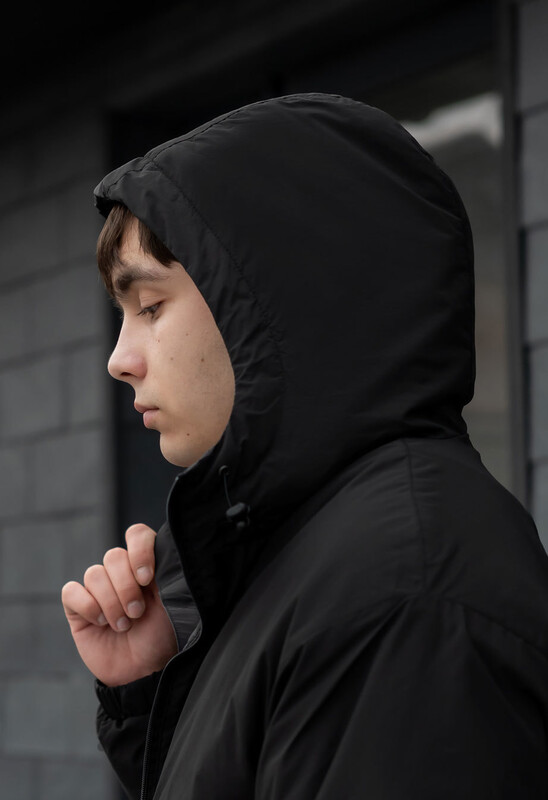 - висока горловина переходить у капюшон, ширина якого регулюється еластичною стяжкою із пластиковими фіксаторами;