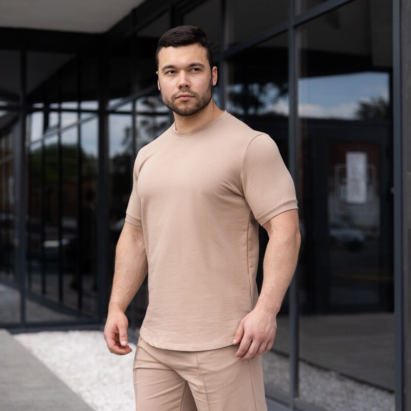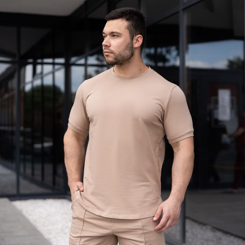 Фото - Базовая натуральная футболка Pobedov Nebo бежевого цвета - Men box