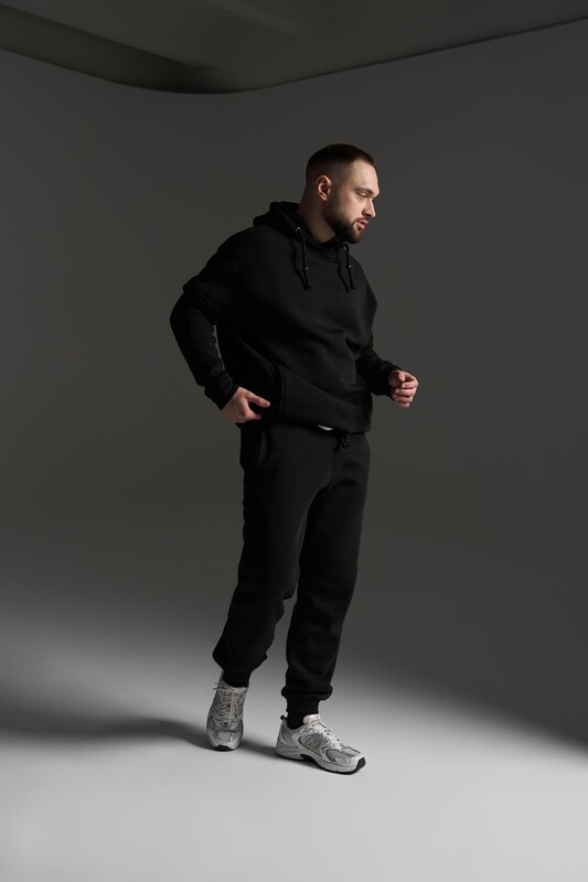 Теплый оверсайз костюм Staff cr black oversize fleece