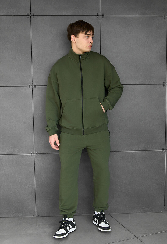 Спортивный костюм в посадке oversize гарантирует удобство в делах на протяжении всего дня. Толстовка на молнии с высоким воротником защищает от ветра, а брюки с манжетами на резинке - гарантируют стильную и удобную посадку.