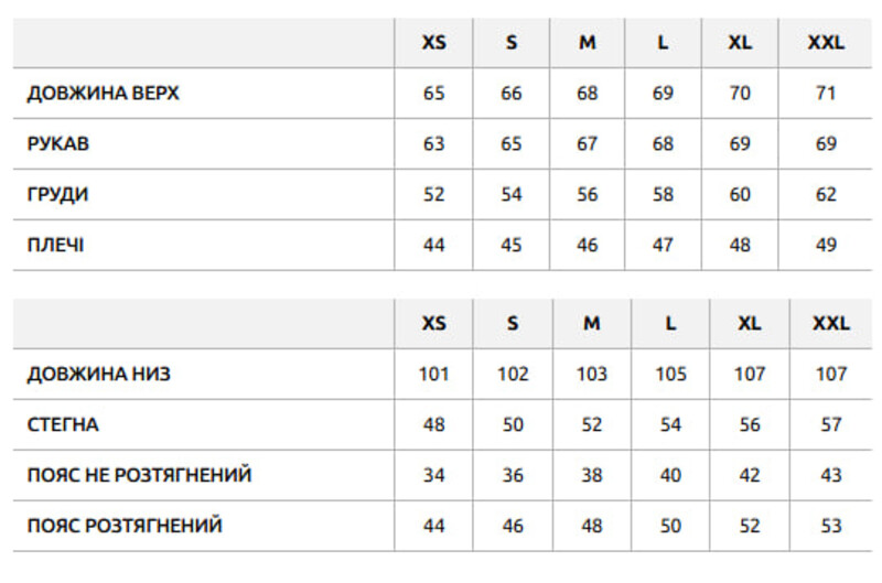 – снизу манжеты с эластичной резинкой.
