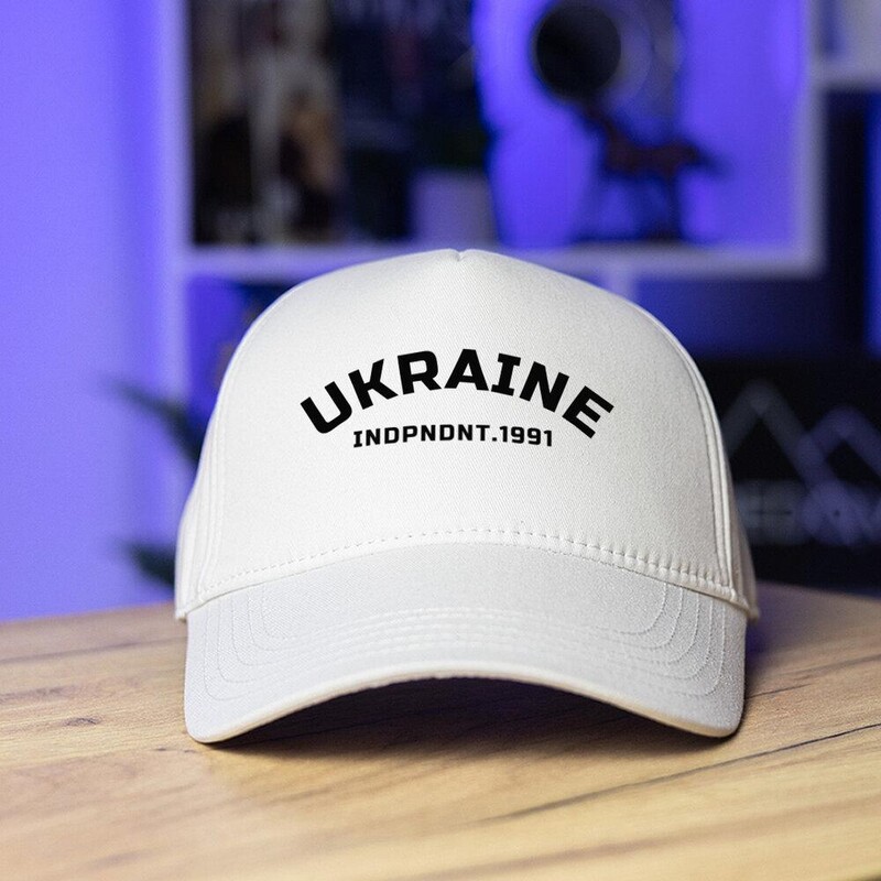 • Белая бейсболка бренда Pobedov с надписью Ukraine