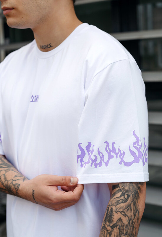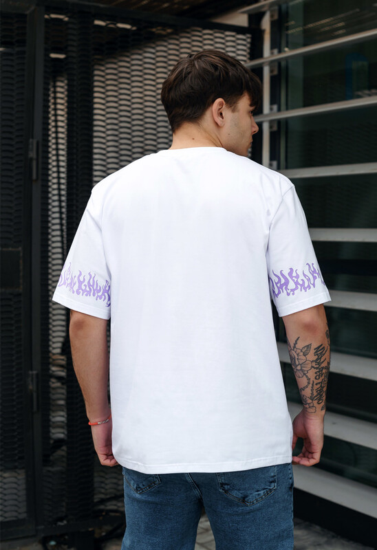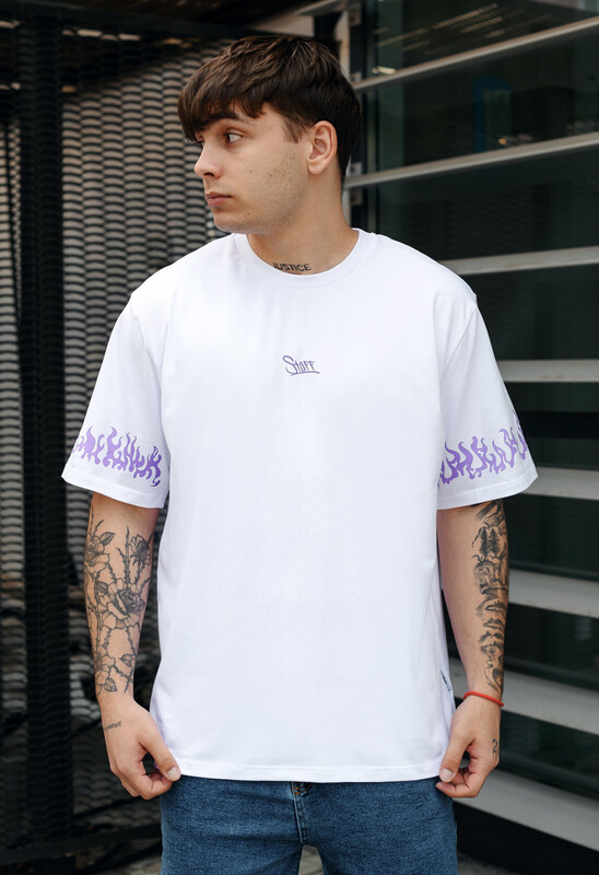 • Белая футболка с принтом Staff logo & fire oversize