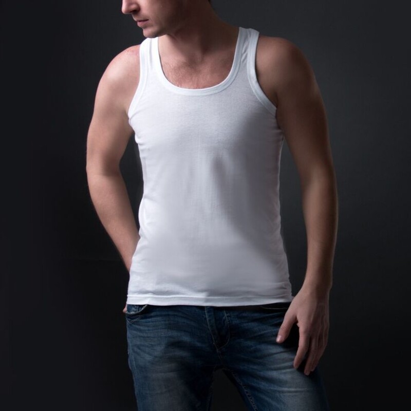 Мужская белая майка под рубашку без швов, 100% хлопок