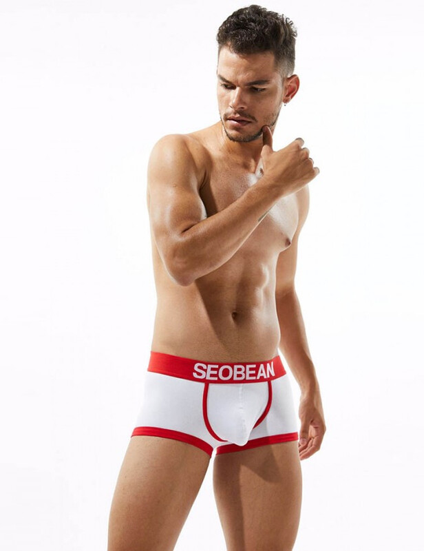 • Боксеры Seobean с красной окантовкой. Цвет: белый