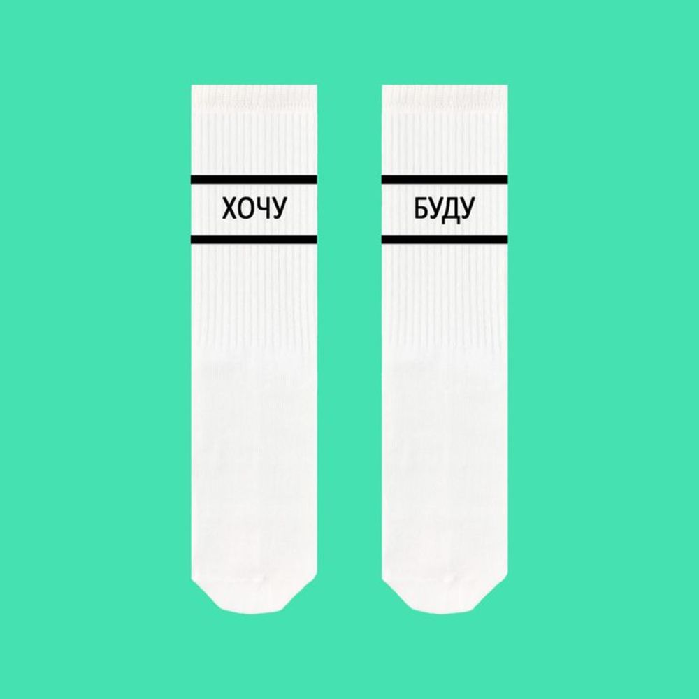 • Белые носки SOX с надписью "ХОЧУ БУДУ"