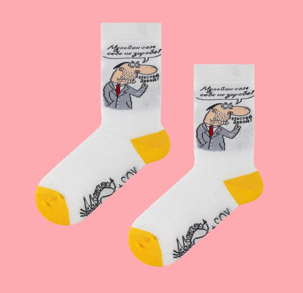 • Белые носки SOX "Мульйон сам себе не заробе. Маслай давай!"