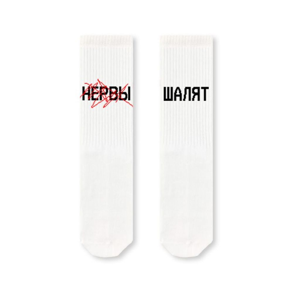 • Белые носки SOX с надписью "НЕРВЫ ШАЛЯТ"
