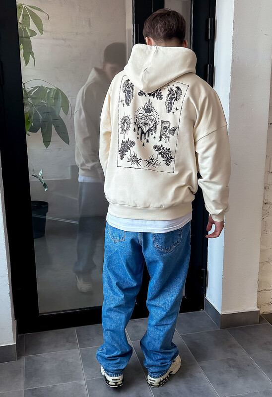 Oversize худі з капюшоном на шнурку, еластичними манжетами та ексклюзивними принтами забезпечить яскравий та стильний образ.