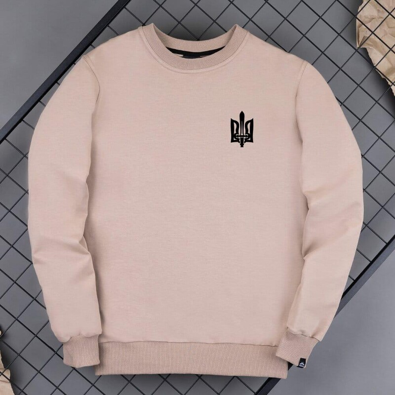 • Бежевый свитшот Pobedov с черной наклейкой "Тризуб Меч"