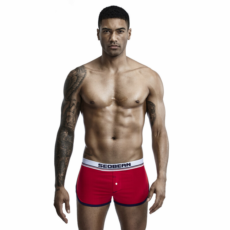 • Боксеры хлопковые Seobean красного цвета с белой резинкой