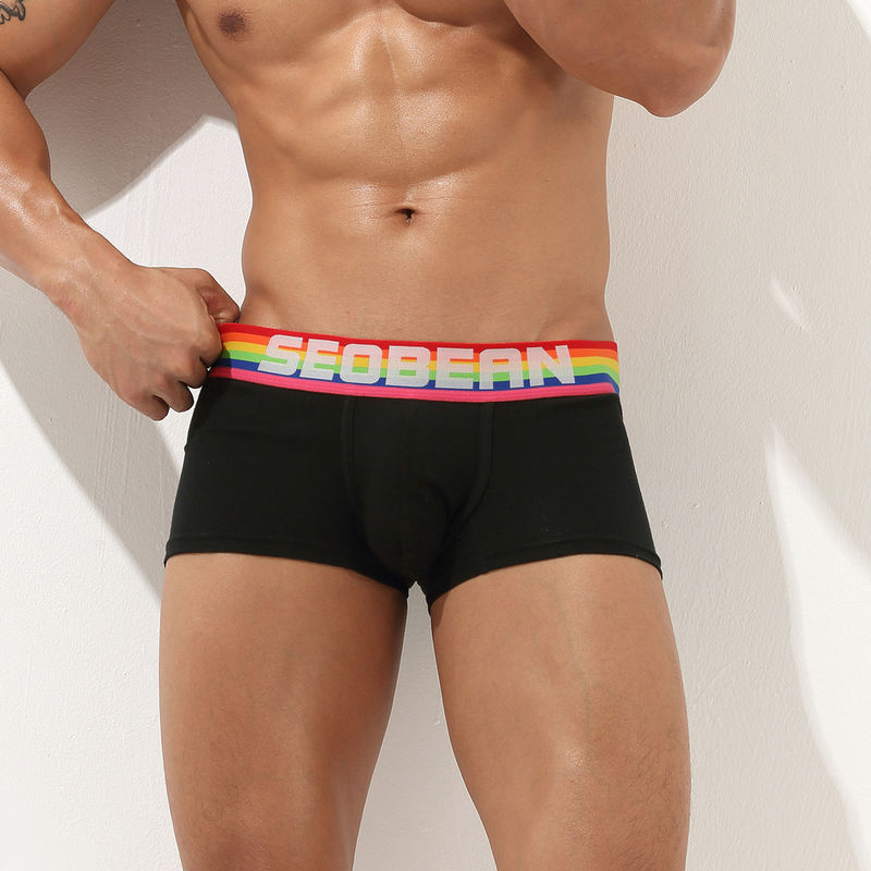 • Боксеры мужские Seobean черного цвета с радужной резинкой