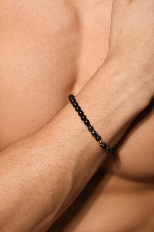 Красивый браслет Gold Elements, сделанный из стеклянных бусин, гематита и золотистой бусины из латуни поможет вам почувствовать себя уравновешенным. Прекрасный подарок и идеальный аксессуар, который дополнит ваш очередной образ. Прокручивай шарики и чувствуйте себя лучше с этим незаменимым браслетом.
