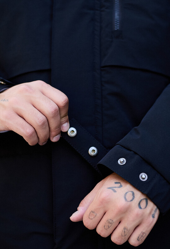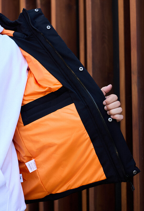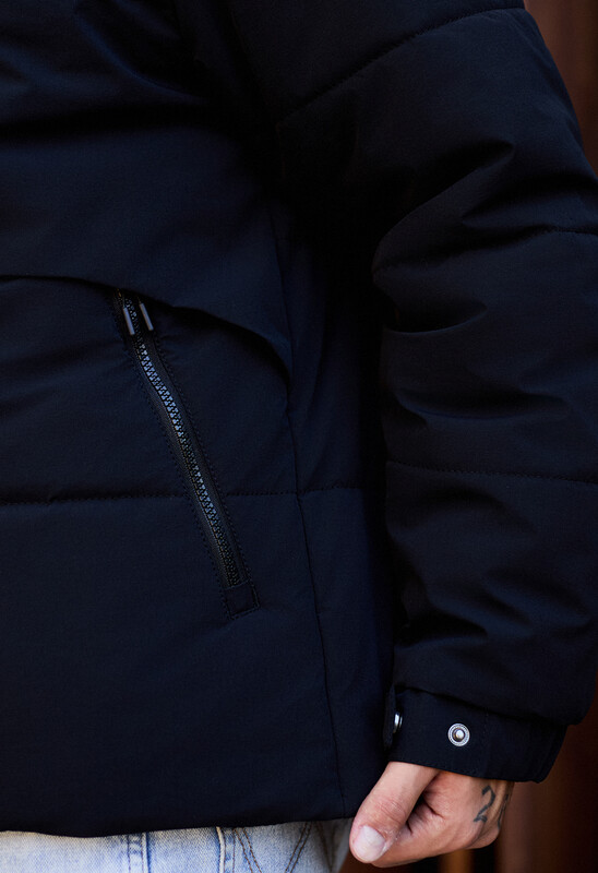 Зимова куртка із вологовідштовхуючою мембраною та якісним утеплювачем — для порятунку від опадів і холоду. Нагрудна кишеня забезпечує швидкий доступ до телефону чи гаманця, манжети на резинках із кнопками допомагають відрегулювати об’єм рукавів, а великий капюшон надійно захищає від поривів вітру.