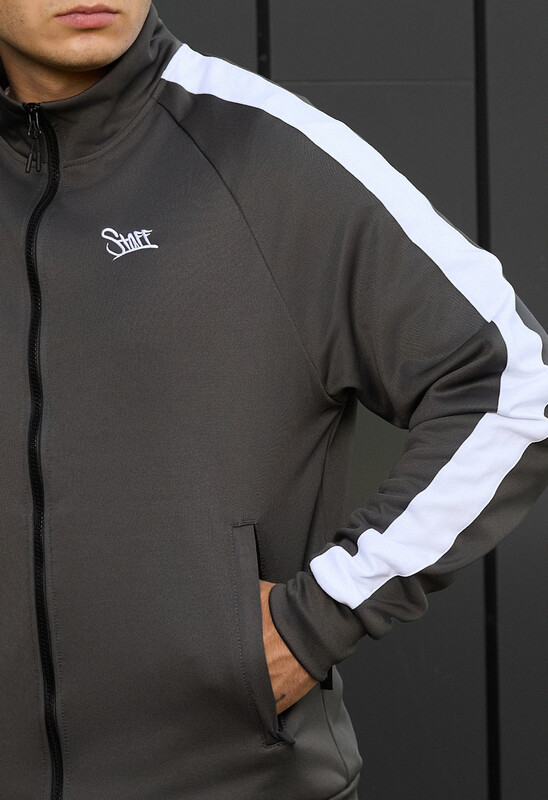 Олимпийка со вставками-полосками вдоль рукавов и вышитым на груди логотипом не сковывает движений и не мнется, создавая удобный образ каждый день.