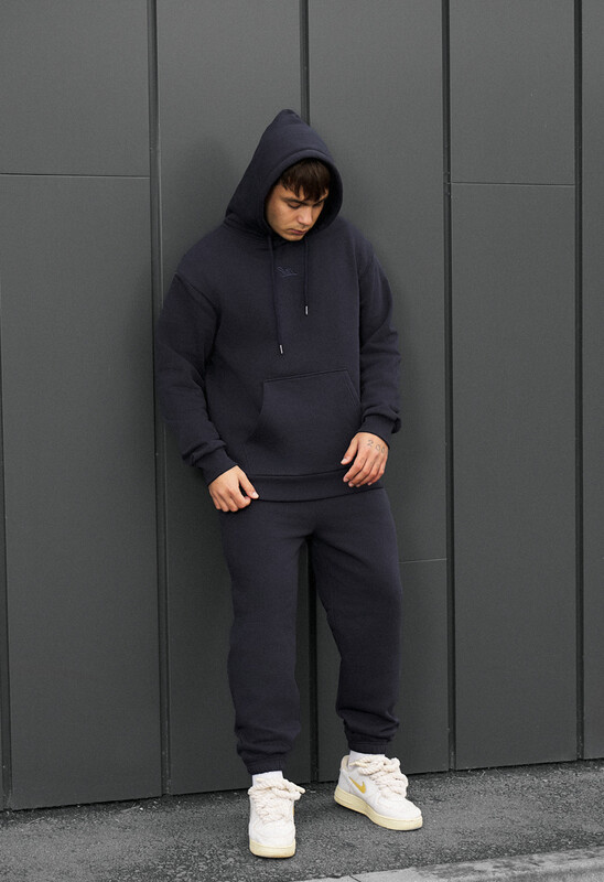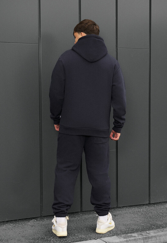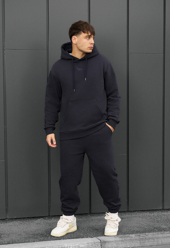 Стильный, удобный и утеплённый спортивный костюм в глубоком тёмно-синем цвете подарит ощущение комфорта и уюта на протяжении всего дня в холодное время. Костюм идеально подходит для осенне-зимнего сезона, поскольку изготовлен из качественного европейского 100% хлопка, утеплённого микрофлисом премиум-класса. Худи имеет крой со спущенными плечами и большой карман-кенгуру спереди. Особый акцент — качественная вышивка с логотипом бренда на груди. Ширина капюшона регулируется шнуром, а фирменная бирка вшита в боковой шов. Брюки оснащены эластичным поясом в рубчик со шнурком для удобной посадки. Для функциональности предусмотрено два прорезных кармана по бокам и один накладной открытый карман сзади. Снизу брюки фиксируются манжетами с эластичной резинкой.