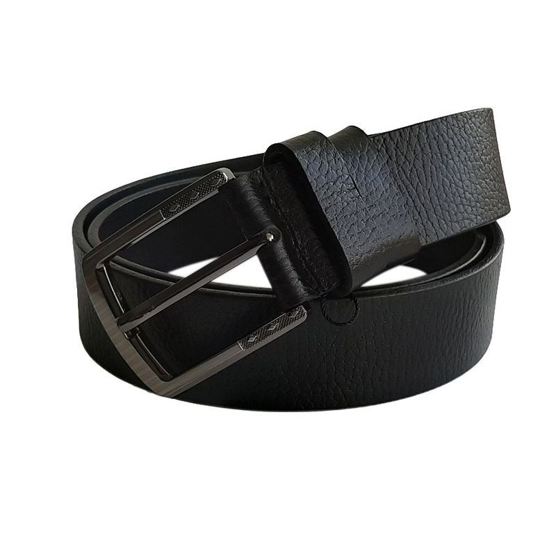 Фото - Ремень для мужчин Leros черного цвета с брендовой бляхой - Men box