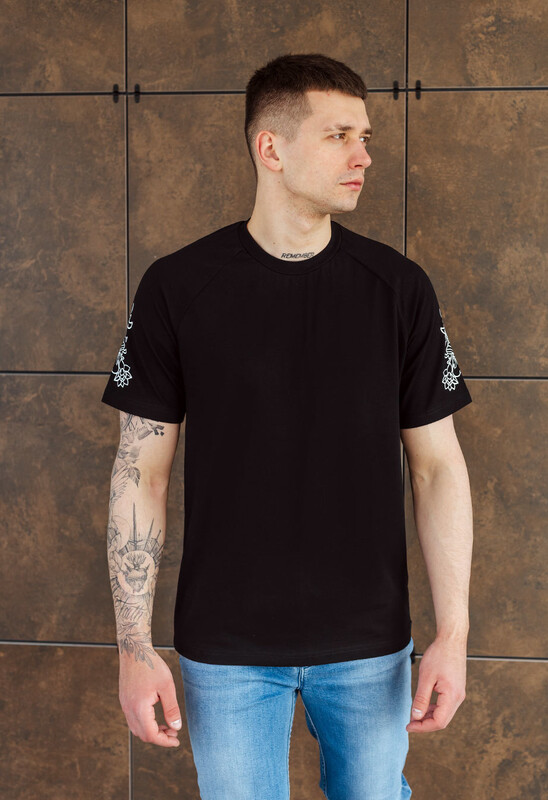 Фото - Футболка с украинской символикой Pobedov черная с желтой вышивкой "Герб" - Men box