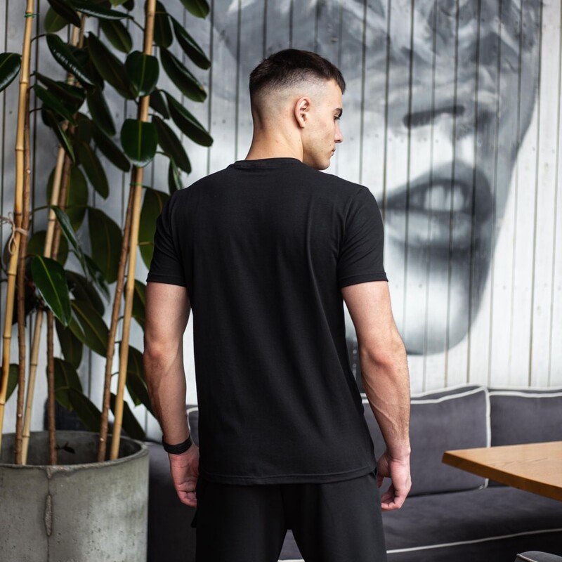 Теперь вы нашли основную футболку своего гардероба - Pobedov "Kaif" в черном цвете с карманом. Круглый вырез, стандартный крой, короткие рукава и нагрудный карман придают изделию уникальности. Высококачественный европейский трикотаж с добавлением стрейча делает эту модель еще более прочной. Рекомендуем покупать вместе с шортами Pobedov Shorts "Kaif" в черном или хаки цвете.
