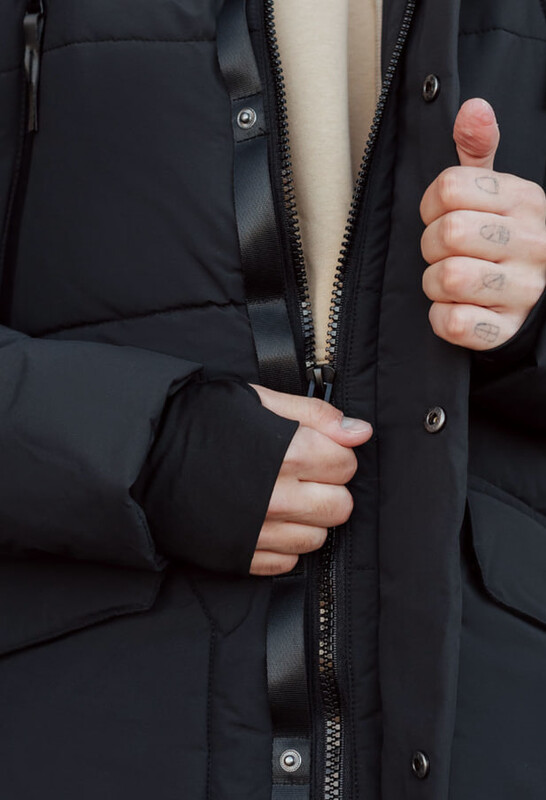Практична зимова парка чудово зберігає тепло, а ще захищає від вітру та вологи, тому вона чудово підійде для прогулянок і тривалих подорожей. Бічні накладні кишені на кнопках виглядають дуже виразно, навіть коли вони наповнені різними речами. А в рукавах є додаткові манжети з розрізом для великого пальця, які запобігають протягам.