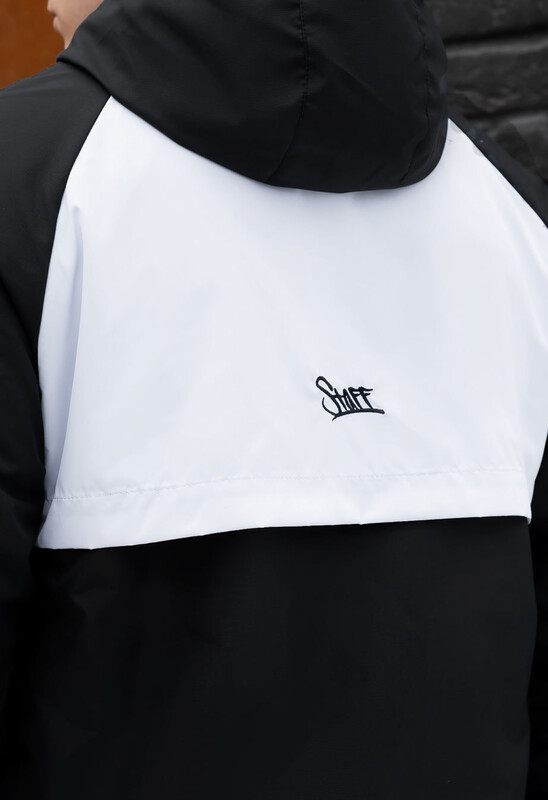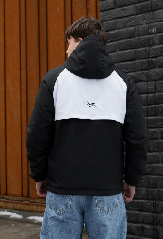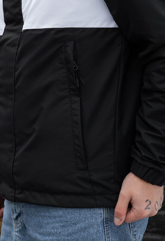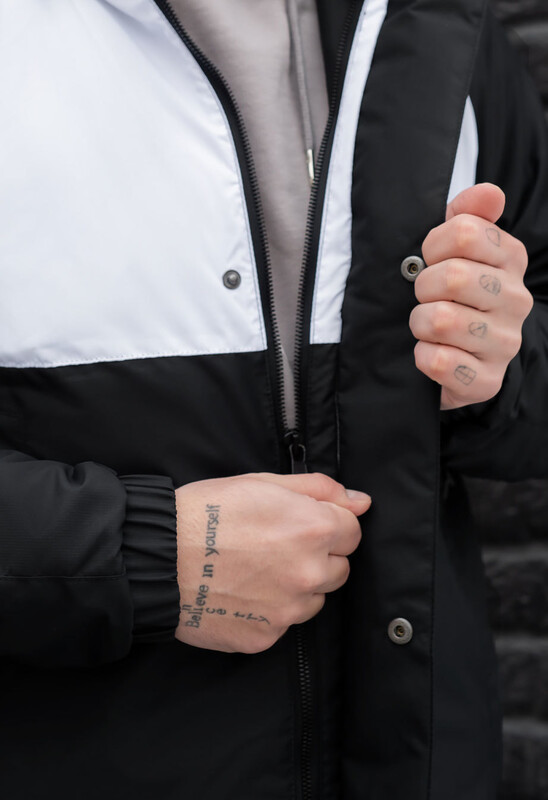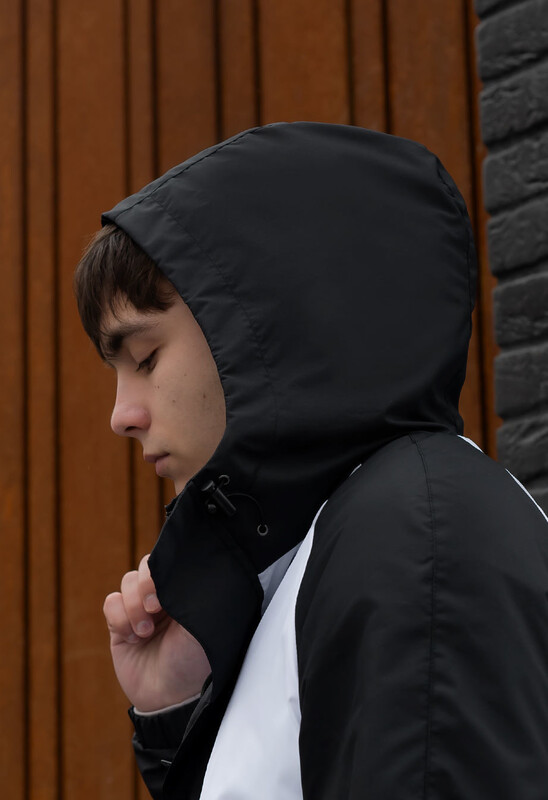 - висока горловина переходить у капюшон, ширина якого регулюється еластичною стяжкою із пластиковими фіксаторами;