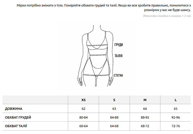 Согласно Постановления Кабинета Министров Украины от 19 марта 1994 г. №172 "Перечень товаров, не подлежащих обмену (возврату)" нательное белье и чулочно-носочные изделия возврату и обмену не подлежит. Просим это учитывать при покупке.