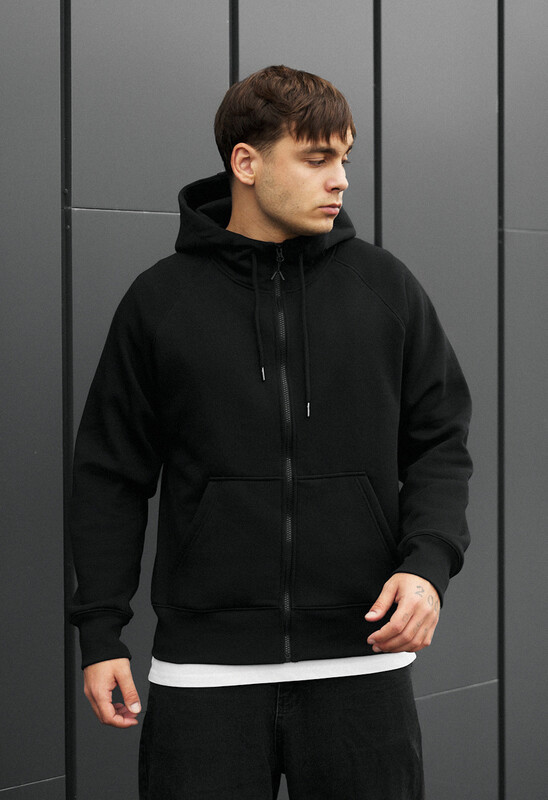 Выберите комфорт и практичность для вашего повседневного образа с этим чёрным худи на молнии. Изготовленное из премиального европейского 100% хлопка и утеплённое микрофлисом, оно обеспечит надёжную защиту от холода осенью и зимой. Модель имеет крой реглан, что гарантирует свободу движений. Особенность этого худи — высокая горловина, плавно переходящая в капюшон, ширина которого регулируется шнуром. Центральная застёжка выполнена на тракторной фурнитуре. Спереди расположены два накладных открытых кармана, добавляющих функциональности, а фирменная бирка с логотипом вшита в боковой шов, подчёркивая качество.
