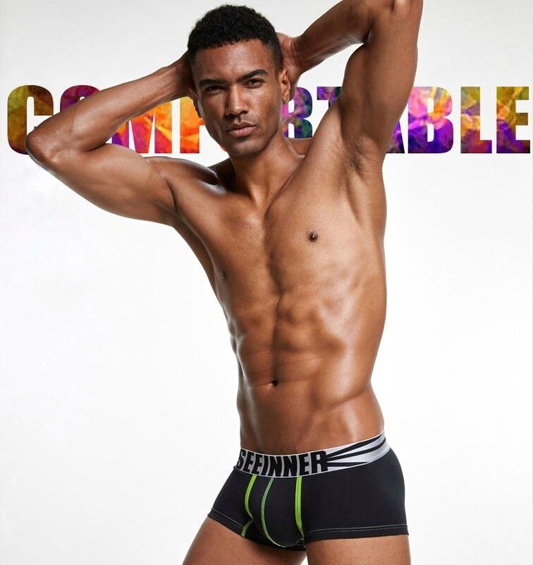 • Черные боксеры с салатовыми швами Seeinner