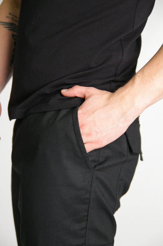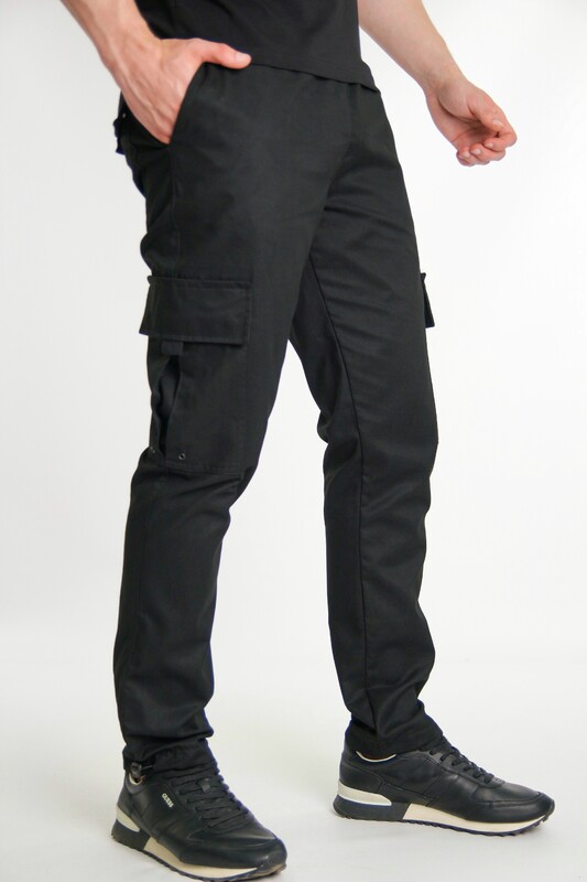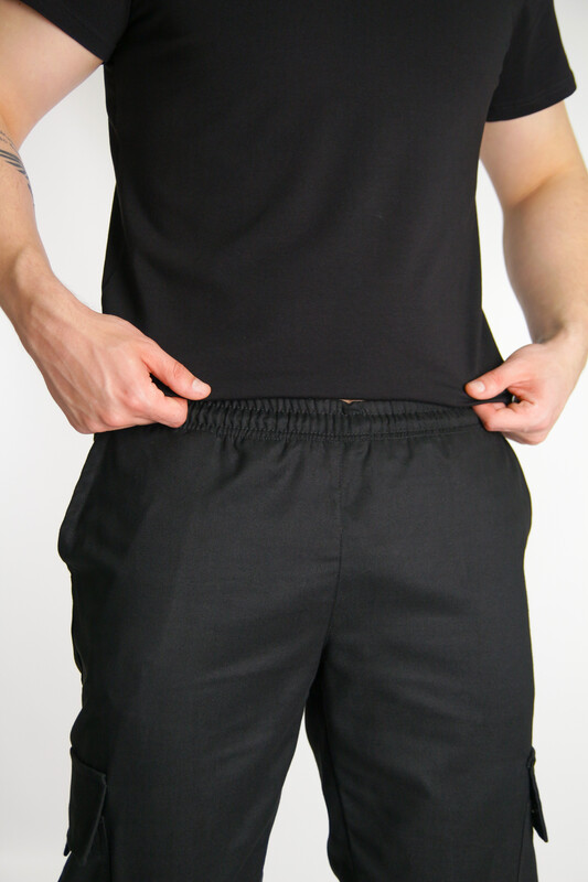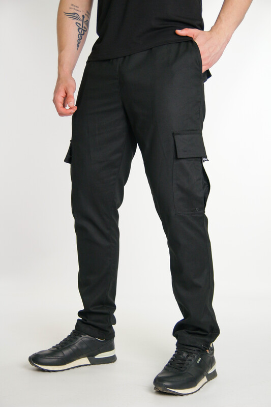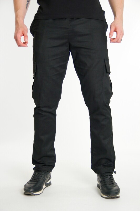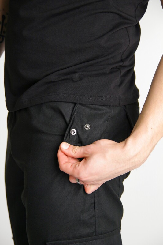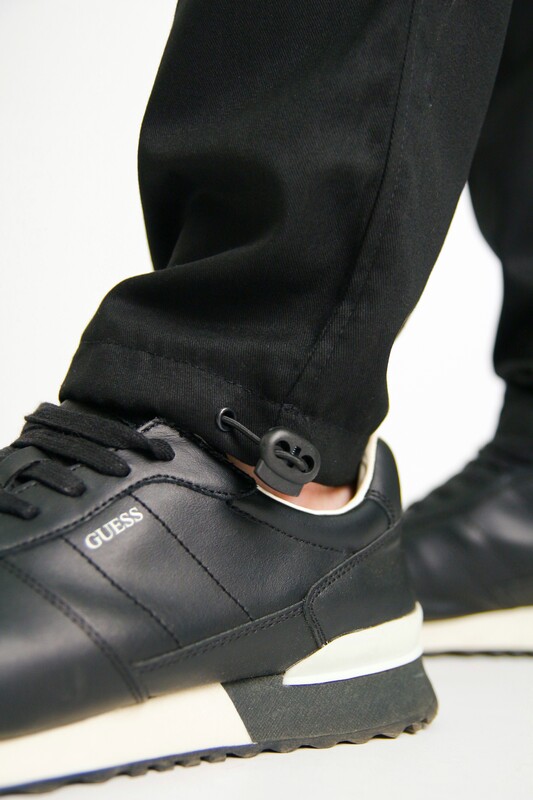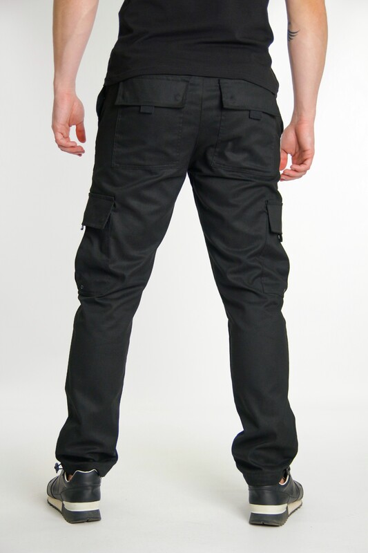 Снизу штаны регулируются эластичным шнурком с фиксатором. Все карманы на кнопках.