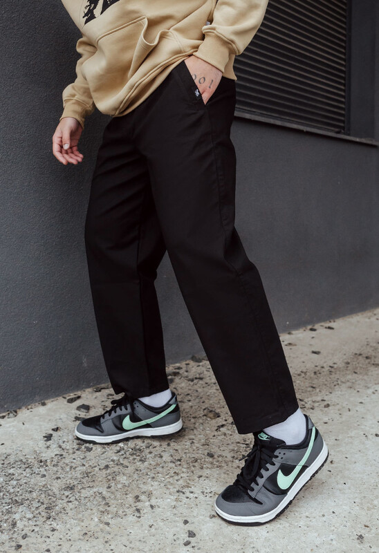 Стильні штани з вільним кроєм стануть чудовим доповненням до будь-якого образу. Модель має прорізні кишені та широкі петлі для ременя.