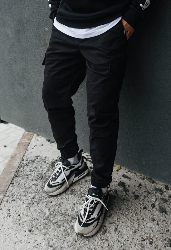 Штаны cargo прекрасно сидят на теле и не сковывают движений. Удобный пояс со шнурком помогает удобно регулировать ширину по талии, а карманы на кнопках сохраняют личные вещи в безопасности.