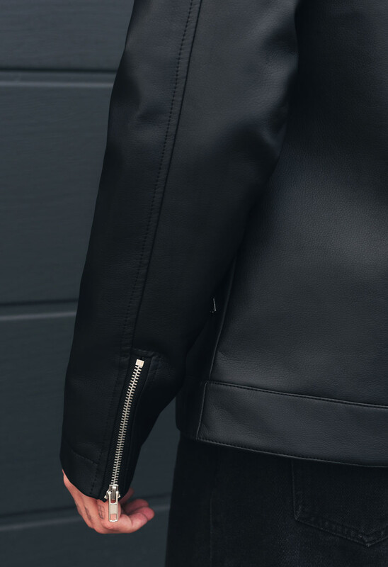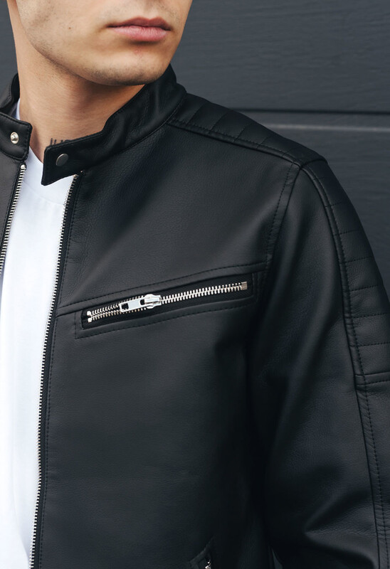 Класична модель куртки з якісної екошкіри із застібкою-блискавкою та вузьким комірцем-стійкою на кнопці. Чудове доповнення до твого образу як на вихід, так і на кожен день.