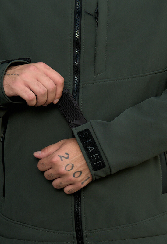 - три прорезных кармана: два на водоотталкивающей молнии внизу, один нагрудный на обычной молнии;