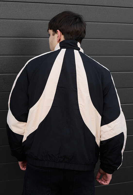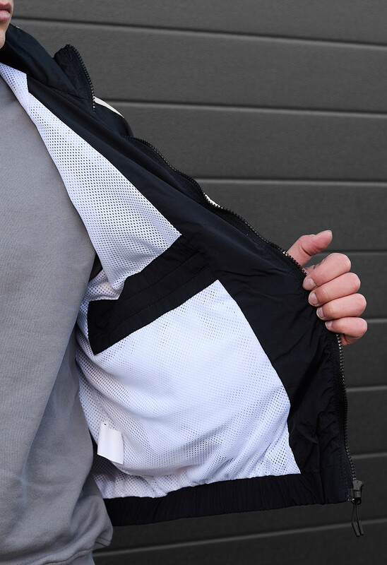 Стильная и легкая ветровка из материала, защищающего от ветра и мелких осадков. Эластические резинки на манжетах и внизу изделия предупреждают сквозняки. А принт на левом рукаве указывает на твою преданность бренду.