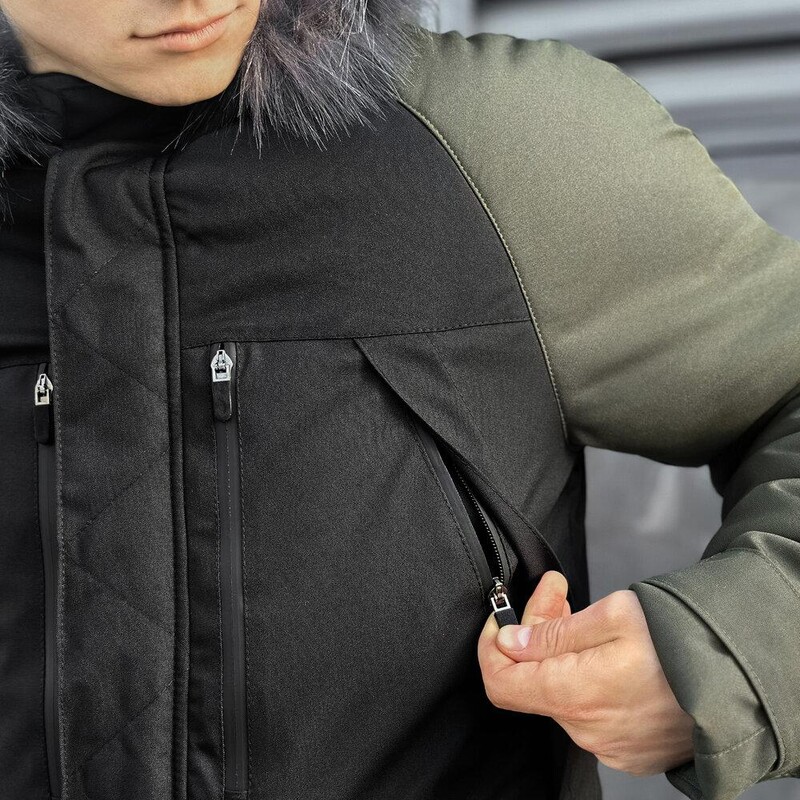 • Двухцветная парка Pobedov Seniora Udacha Gray. Цвет: хаки-черный