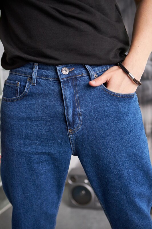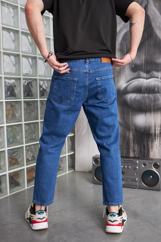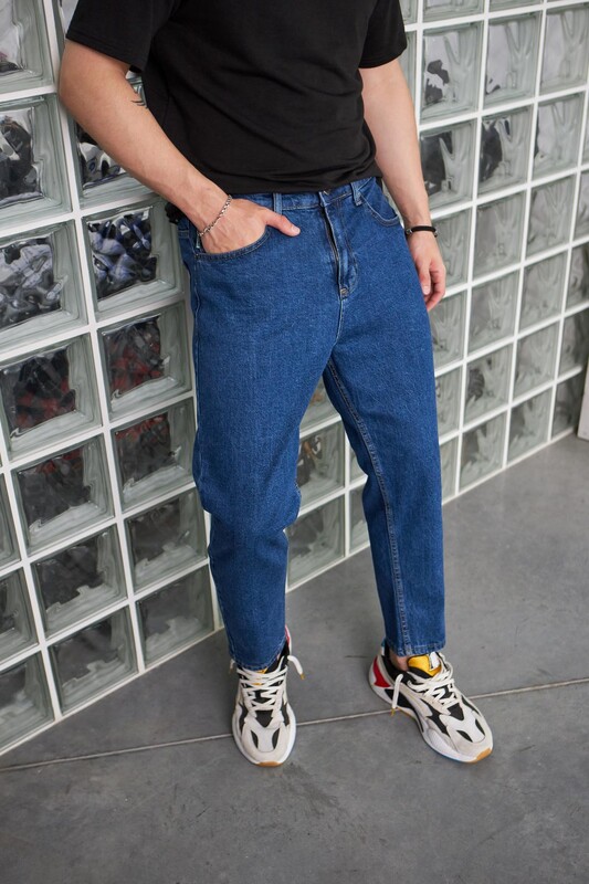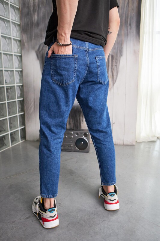 2 косых прорезных кармана спереди и 2 накладных кармана сзади. В поясе изделие фиксируется с помощью пуговицы (есть ширинка). Имеются петли для ремня
