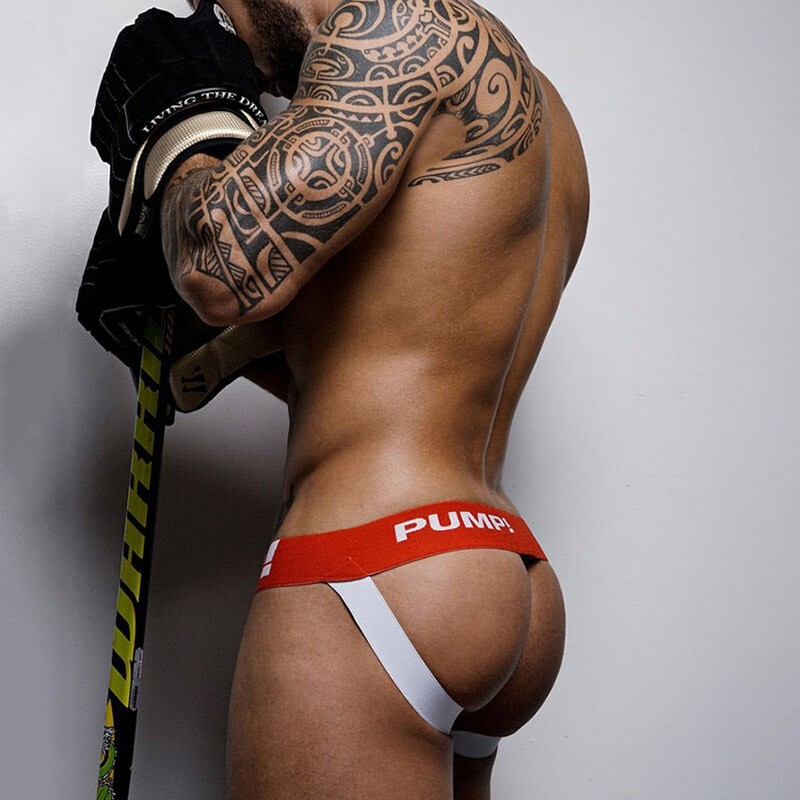 Фото - Мужские трусы танга Pump белые с яркой резинкой - Men box