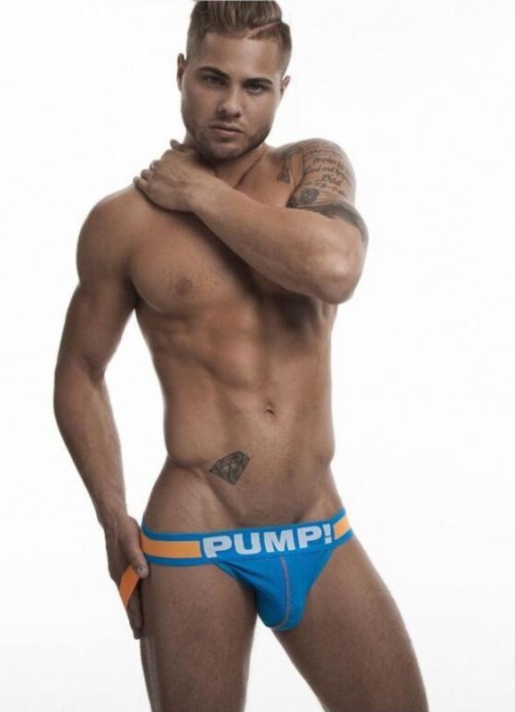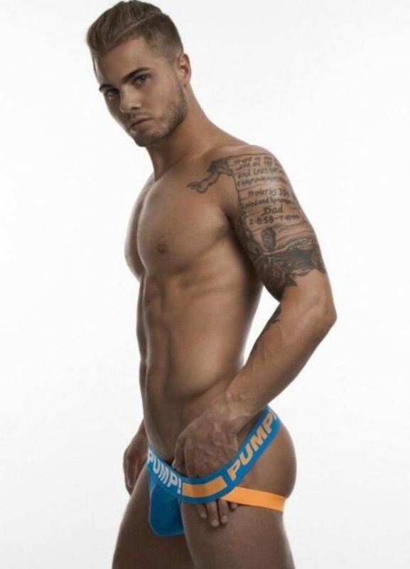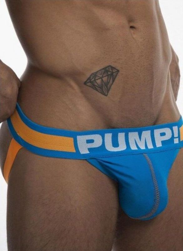 Фото - Мужские трусы танга Pump белые с яркой резинкой - Men box
