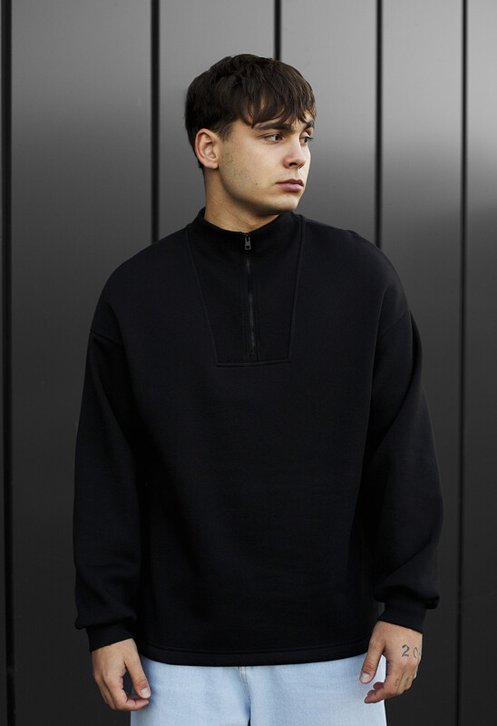 Утеплений світшот прямого oversize крою з блискавкою та еластичними стяжками з боків допоможуть створити яскравий образ та подбати про тепло у холодну пору.