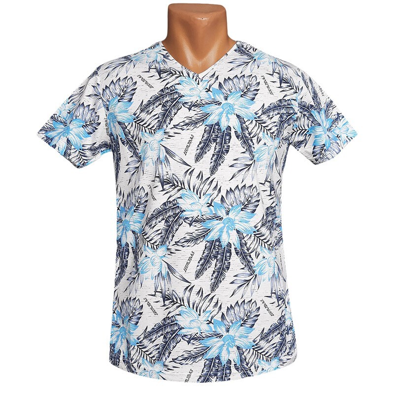 • Футболка Leonidas белого цвета с серо-голубыми цветами