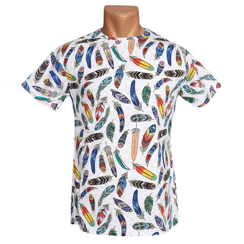 • Футболка от бренда Leonidas белая с разноцветными перьями
