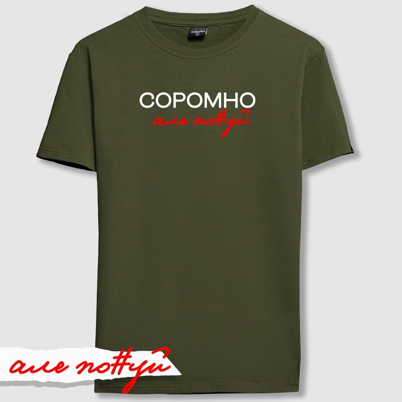 • Футболка Pobedov Peremoga цвета хаки с текстовым принтом