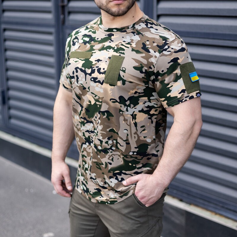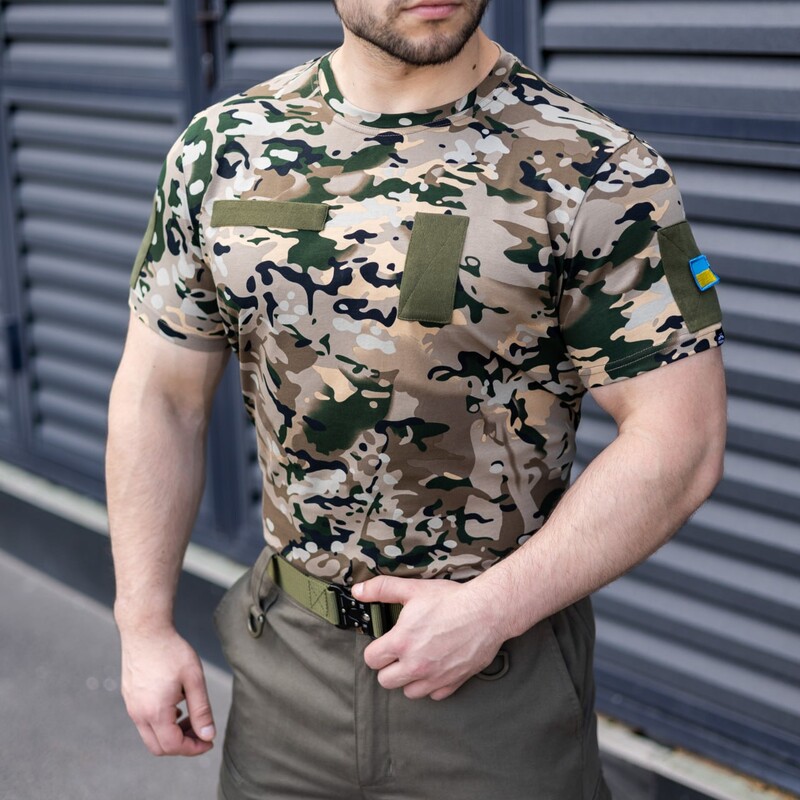 На груди и рукавах предусмотрены панели велкро для крепления шевронов и отличий. В комплекте к футболке идет один шеврон – флаг Украины. Благодаря уникальной разработке кроя, футболка идеально садится по фигуре и в то же время не сильно облегает, со