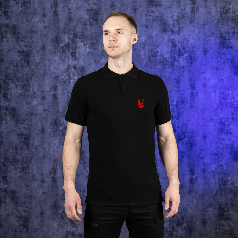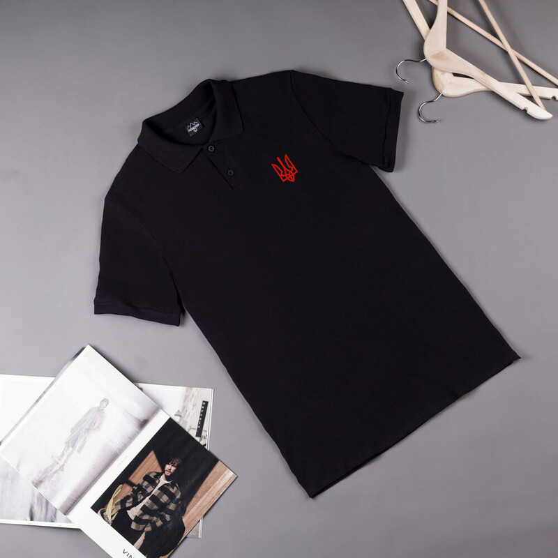 • Футболка-поло Pobedov Loft черная с гербом Украины