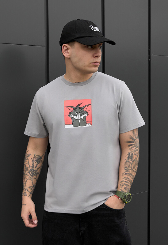 Фото - Базовая темно-серая мужская футболка Intruder с ярким принтом - Men box