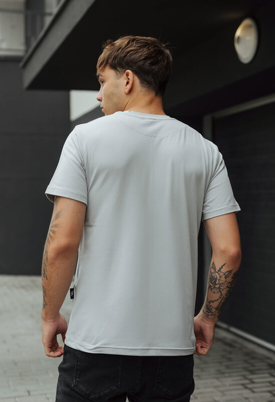Стильная футболка классического кроя из хлопкового трикотажа с добавлением эластана. Модель дополнена эксклюзивным принтом.