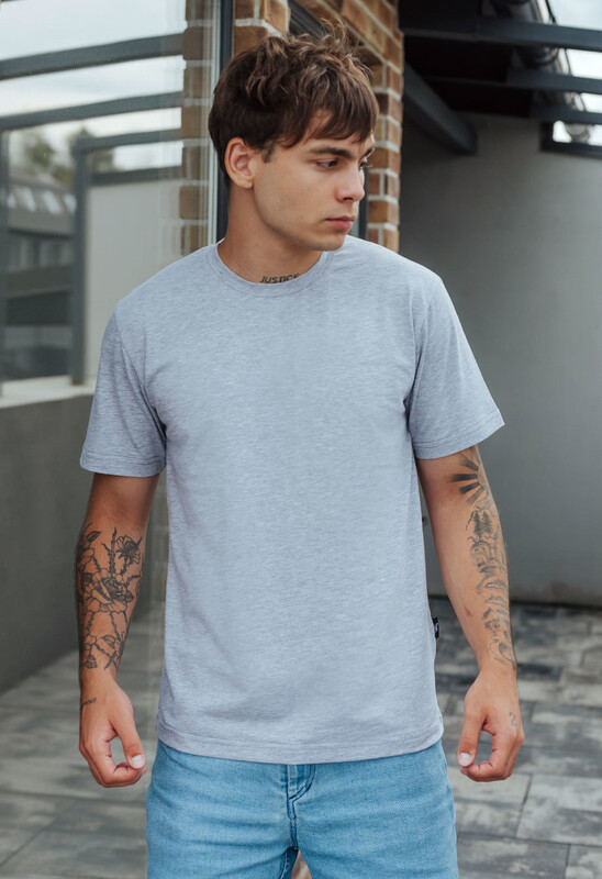 Стильная однотонная футболка классического кроя из хлопкового трикотажа с добавлением эластана.
